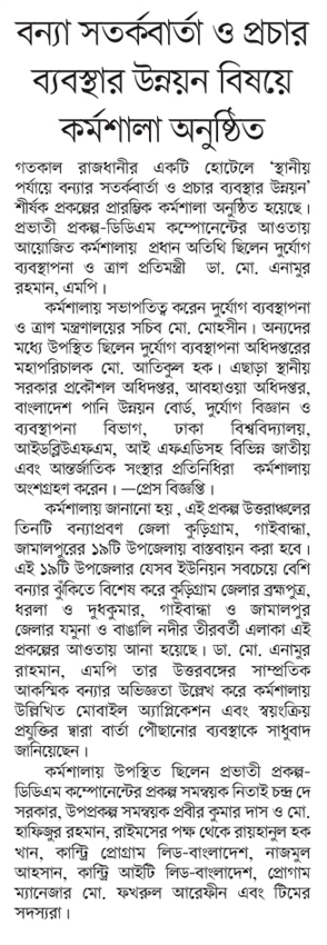 Regional Level Inception Workshop on “Development of Local Flood Early Warning and Dissemination System” |